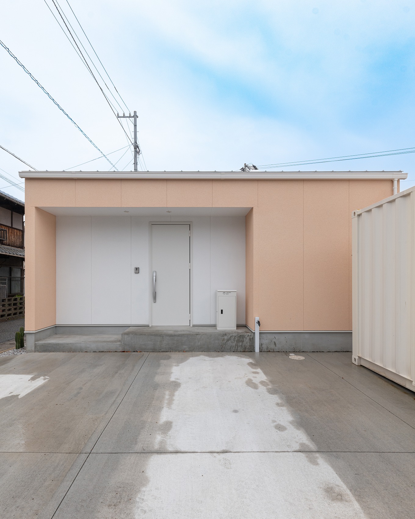 真っ白い外観が青空に映える平屋
