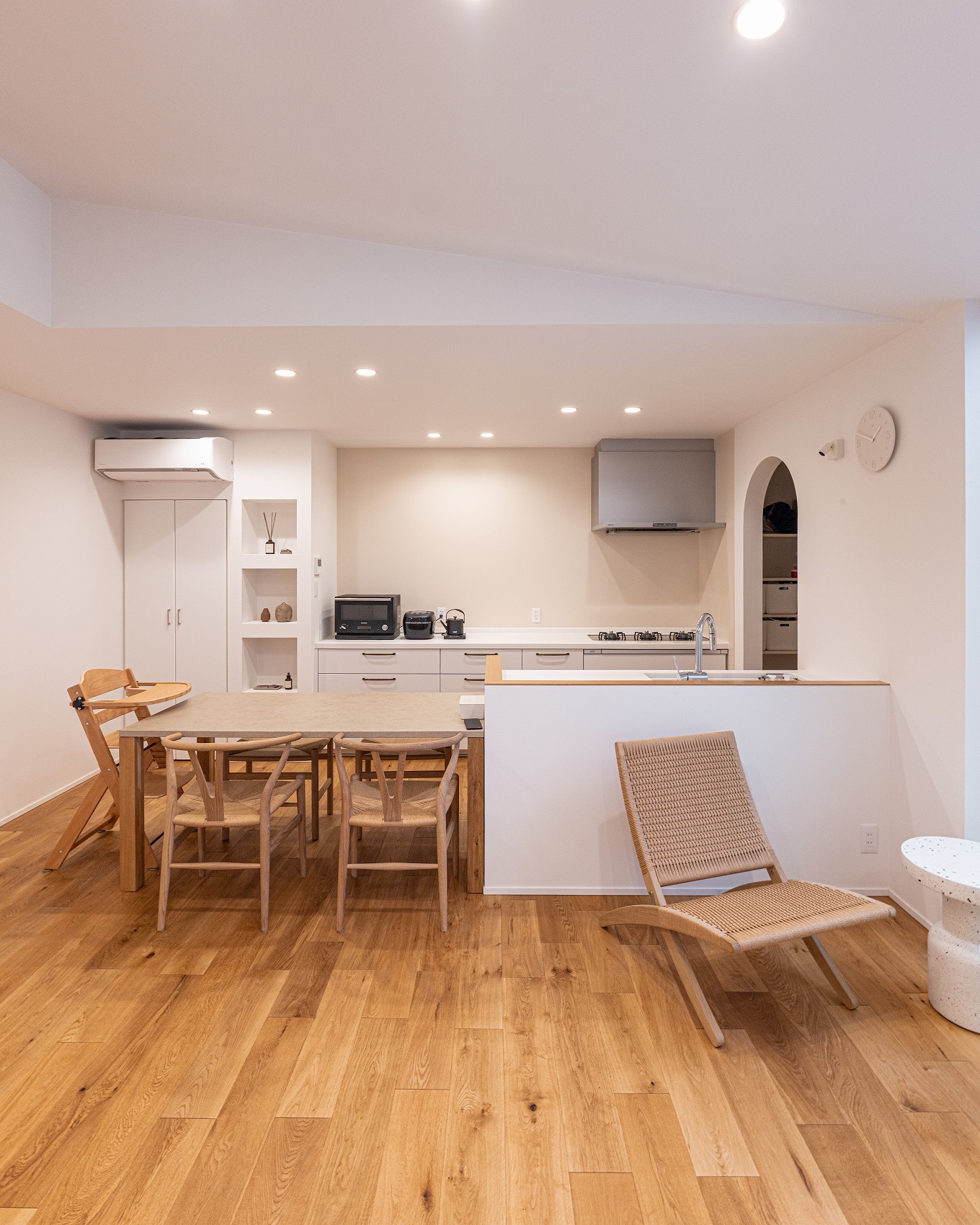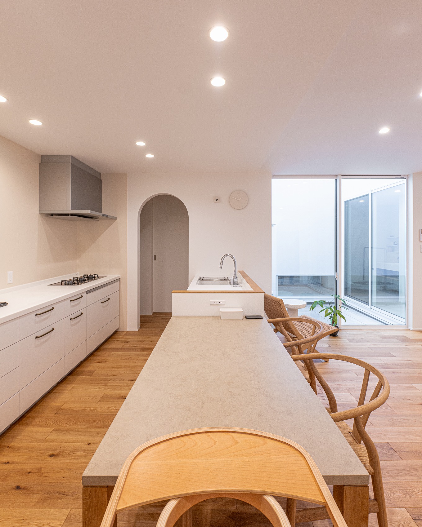 コックピットキッチンを中心に家族が集う半平屋の邸宅